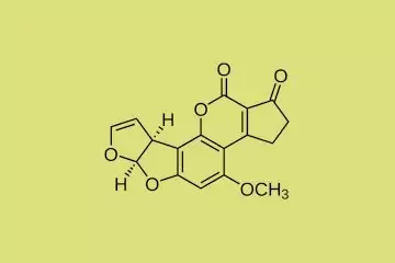 Chemische Formel für Aflatoxin B1, C17H12O6